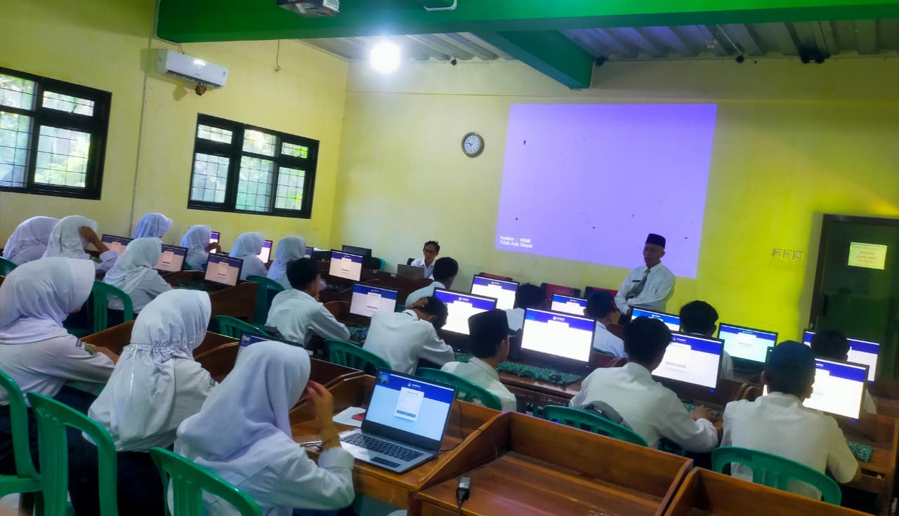 Keberhasilan jalannya simulasi ini tidak lepas dari persiapan teknis yang dilakukan jauh-jauh hari. Bapak Wahab, selaku operator utama MTs Ma’arif NU 1 Kedungbanteng, bertanggung jawab penuh dalam memastikan seluruh perangkat keras, sinkronisasi server, hingga kestabilan jaringan internet berjalan tanpa kendala.